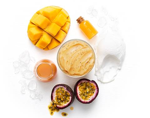 Mango, passionfruit, mango nectar, tropical juice, sorbet & ice