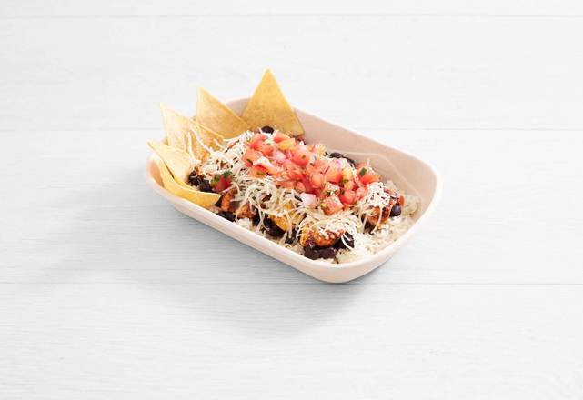 Rice, jack cheese, vegetarian black beans, salsa and filling, served in a bowl